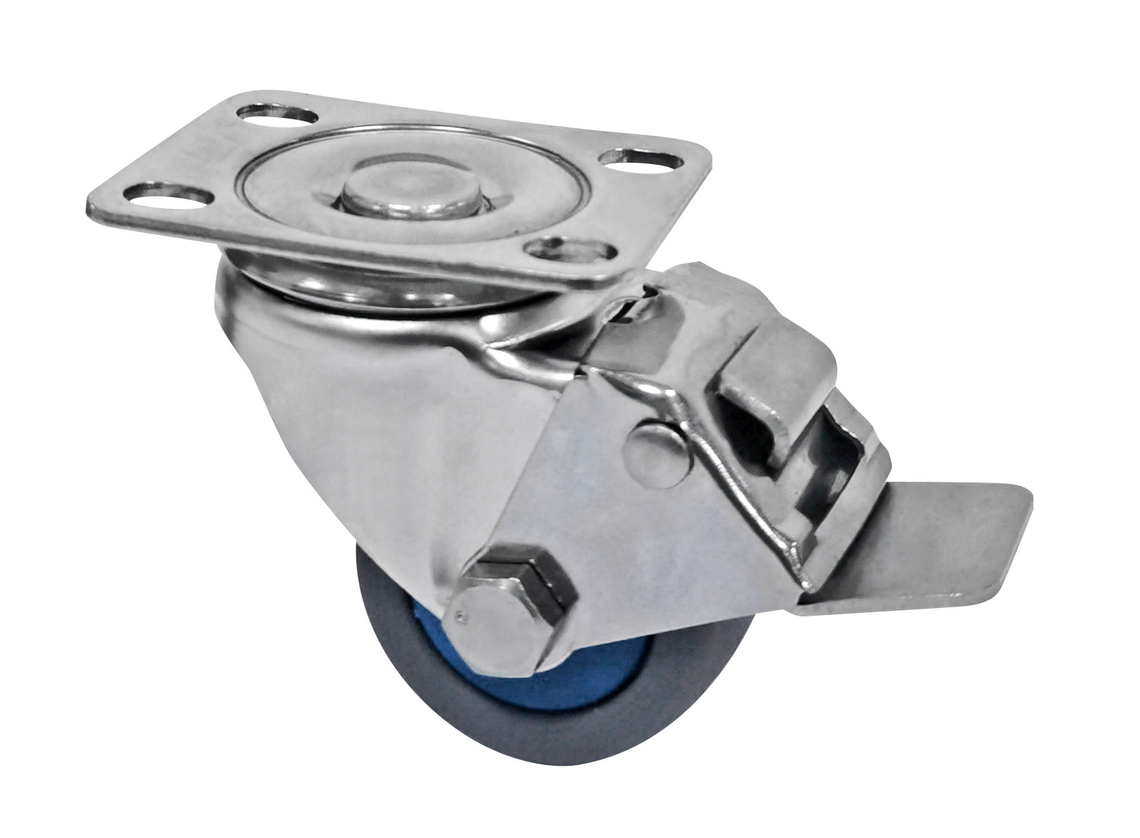 These stainless steel TPR casters feature a hygienic 304 stainless steel frame with FDA-compliant thermoplastic rubber (TPR) tread for food-safe, non-toxic operation, combining corrosion resistance with excellent floor protection. The sealed double ball bearing system (IP54 rated) ensures smooth 360° rotation while preventing contamination, supporting 80kg loads with a low 72mm installation height for compact equipment integration.