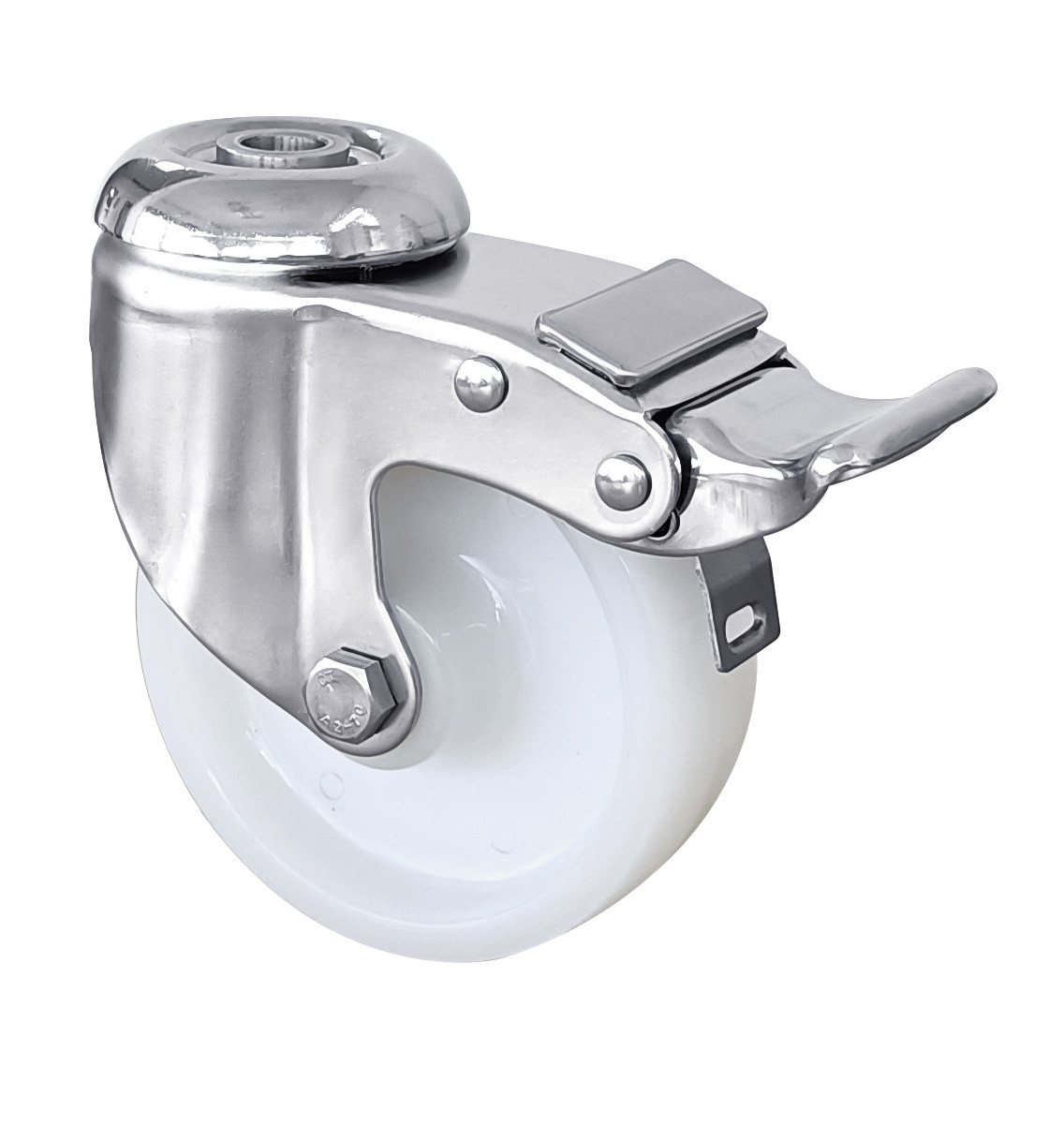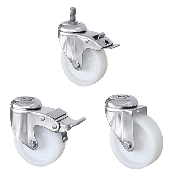 1.White PA Wheel: Polyamide (PA) tread for low noise, smooth rolling, and floor protection in clean environments.