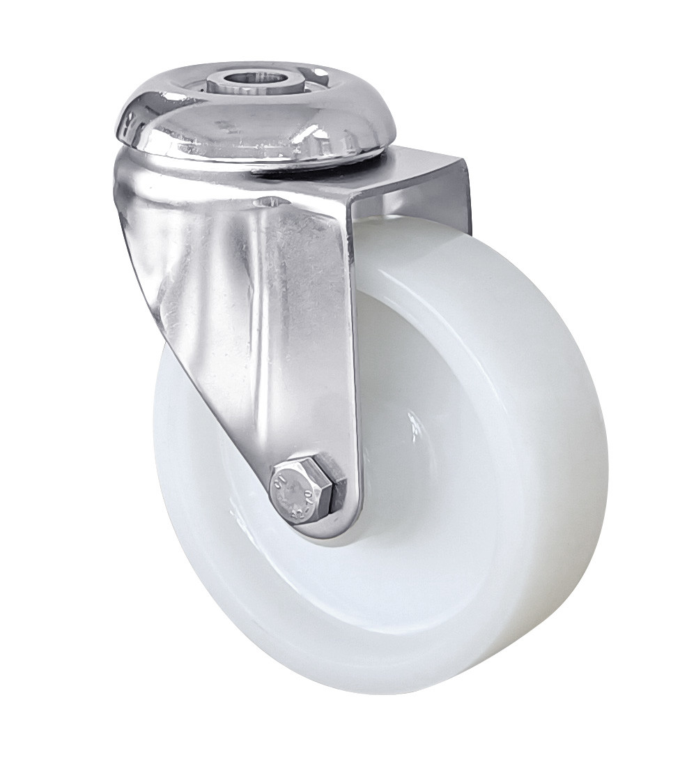 These medium-duty PA casters combine stainless steel durability with a quiet, non-marking PA wheel, ideal for hygienic and industrial mobility. The Terling bearing ensures smooth movement under heavy loads, while the white PA material resists oils and maintains cleanliness.