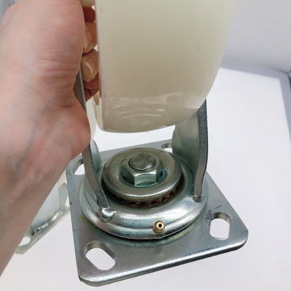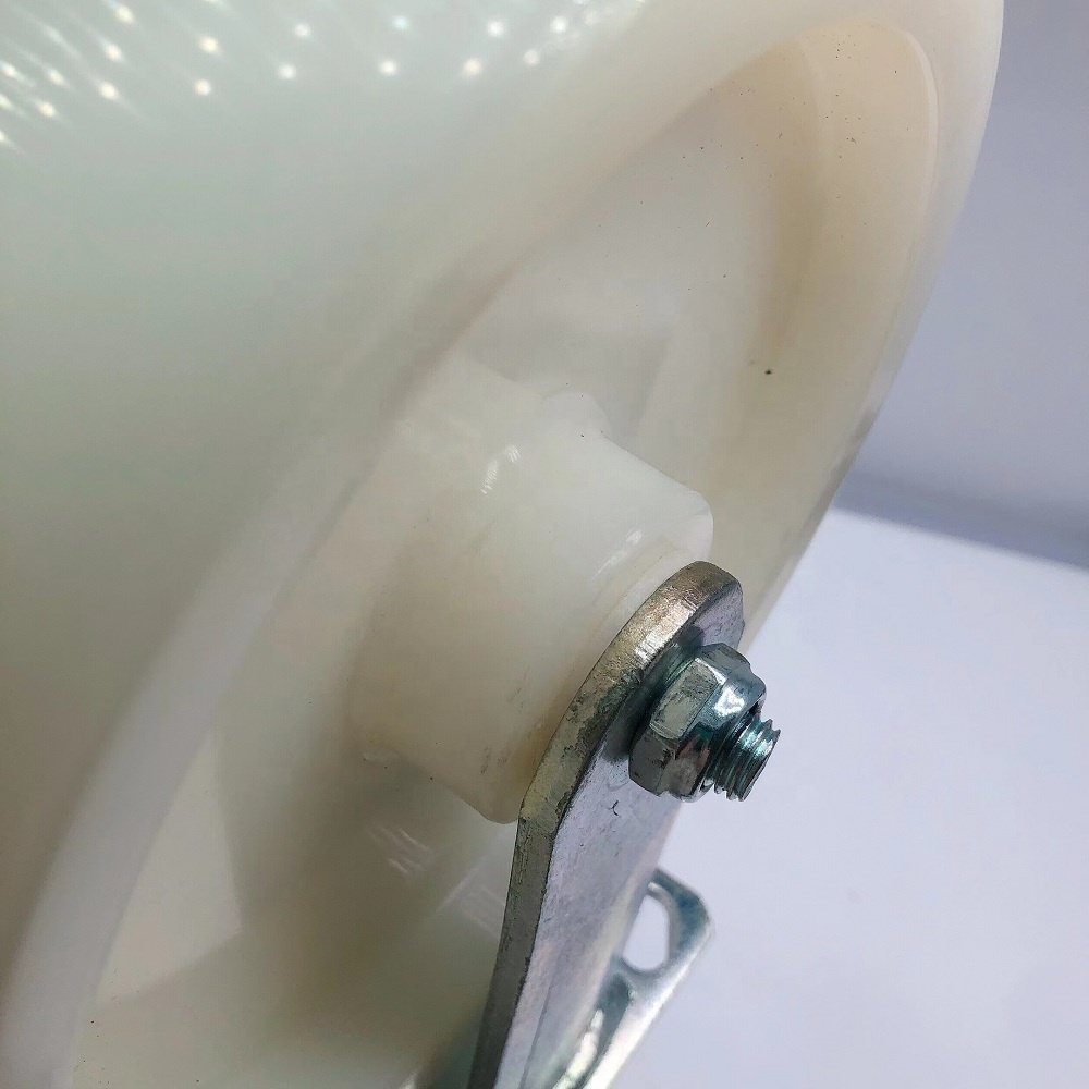The wheel is made of high-strength nylon material, offering excellent wear resistance, high load capacity, and smooth rolling performance on various floor surfaces. Nylon wheels are widely used in industrial and food processing environments due to their durability and stability.